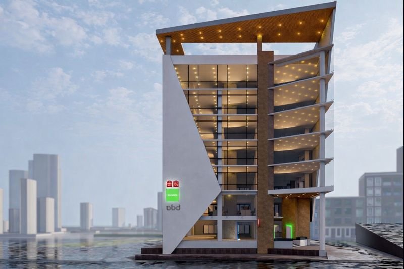 Features an innovative architectural design that integrates commercial spaces with an exclusive penthouse on the top floor. Built using a durable steel framework, combined with cement boards and aerated blocks to ensure strength, efficiency, and modern performance.